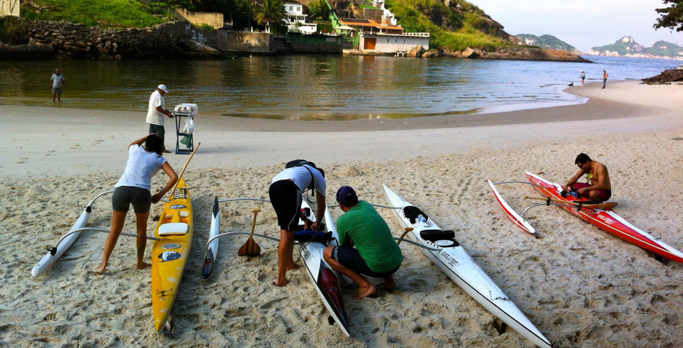 A ideia rapidamente tomou forma e ganhou força durante a confraternização no Bar Urca, e ao longo do dia ficou claro que era mais do que “papo de bar”. Às 7h estávamos na Praia Vermelha para colocar as canoas Bahari, Pumau, Nascente e Lokahi nos racks dos carros e seguir rumo à Barra, onde chegamos pouco depois das 8, descarregando nosso aparato marítimo-polinésio.